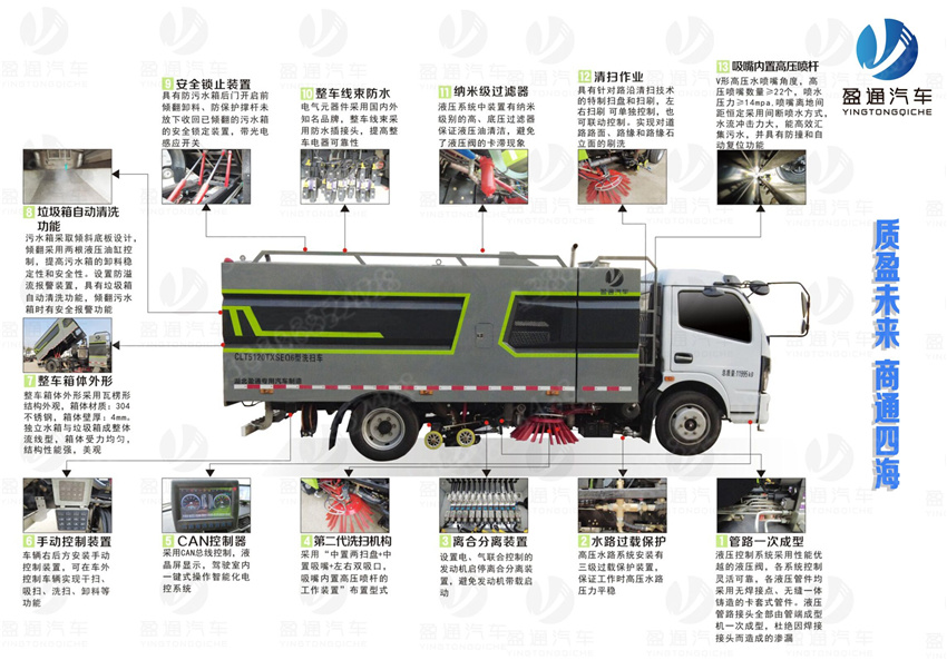 吸塵車是道路清掃車系列之一,是盈通汽車公司研發的具有自主知識產權的專利產品——《高速高強氣流清掃除塵率),全部用氣流作業訪式循環,不用刷子、不噴水,徹底解決了灰塵粉塵物料污染嚴重的問題,是一種環保、節能的現代化新型環衛產品,該產品集清掃、垃圾回收和運輸為一體,廣泛用于城市環衛、高速公路機場、碼頭、居民小區等。